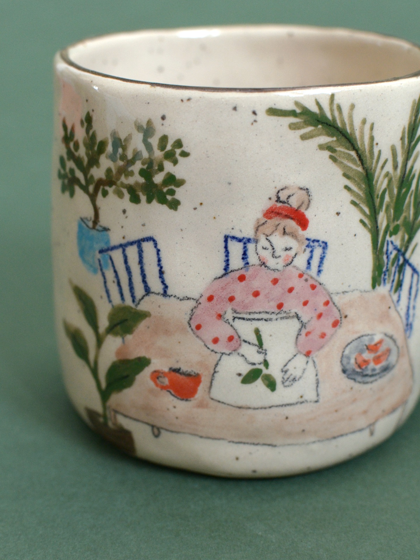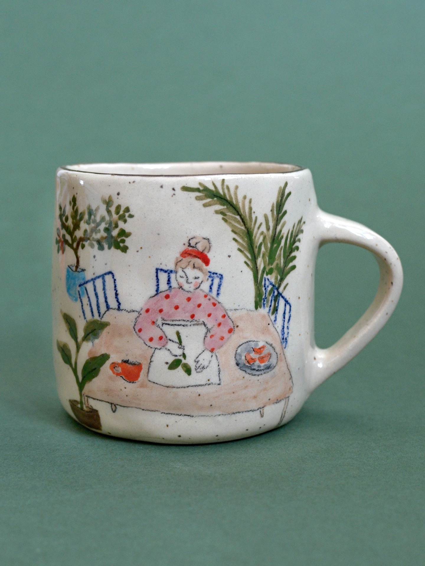 • mačkaný hrnek s autorskou ilustrací z kolekce Botanic people / kytkomilové
