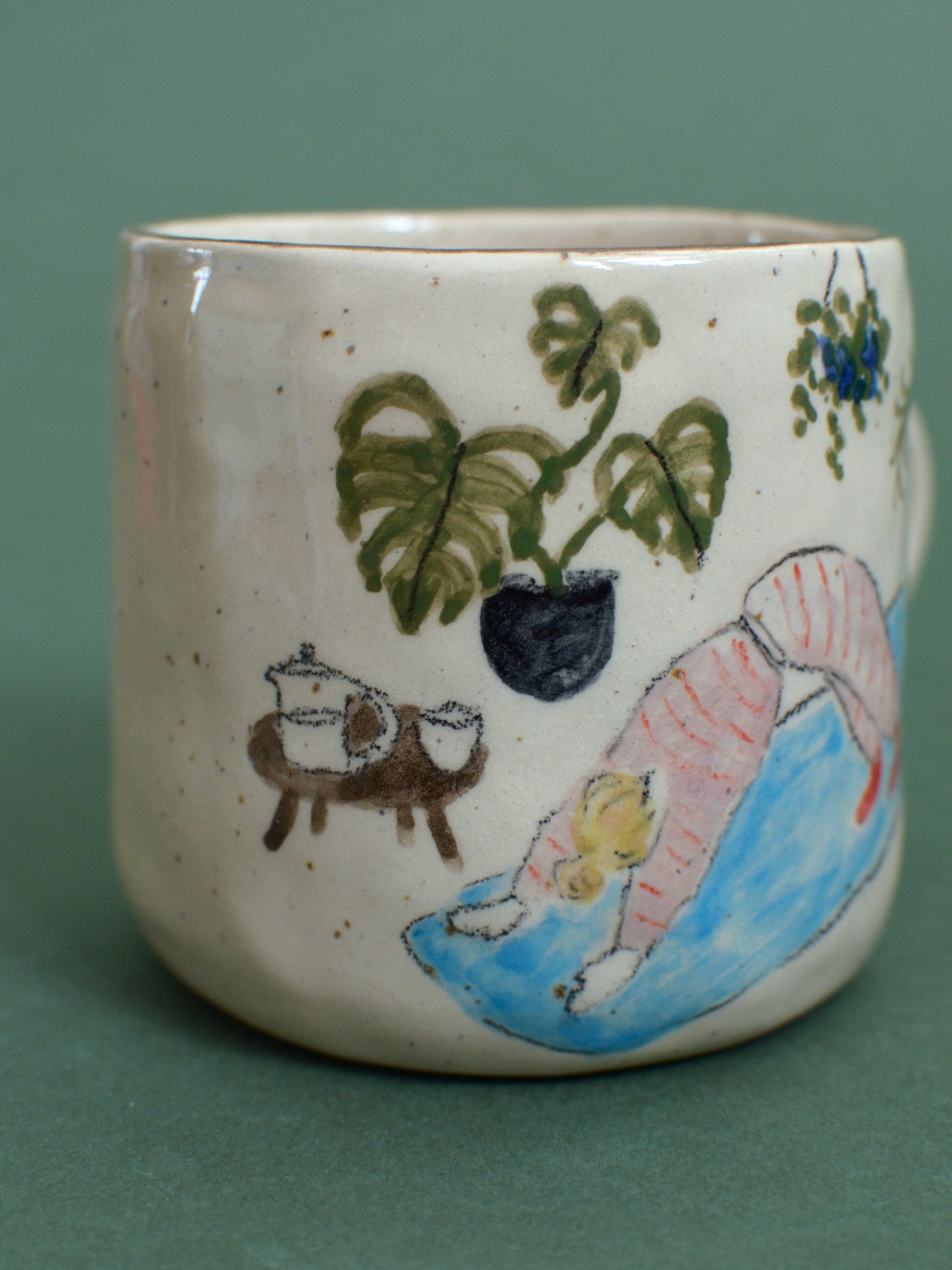 - Hand-pinched mug with an original illustration from the Botanic People / Plant Lovers collection.
