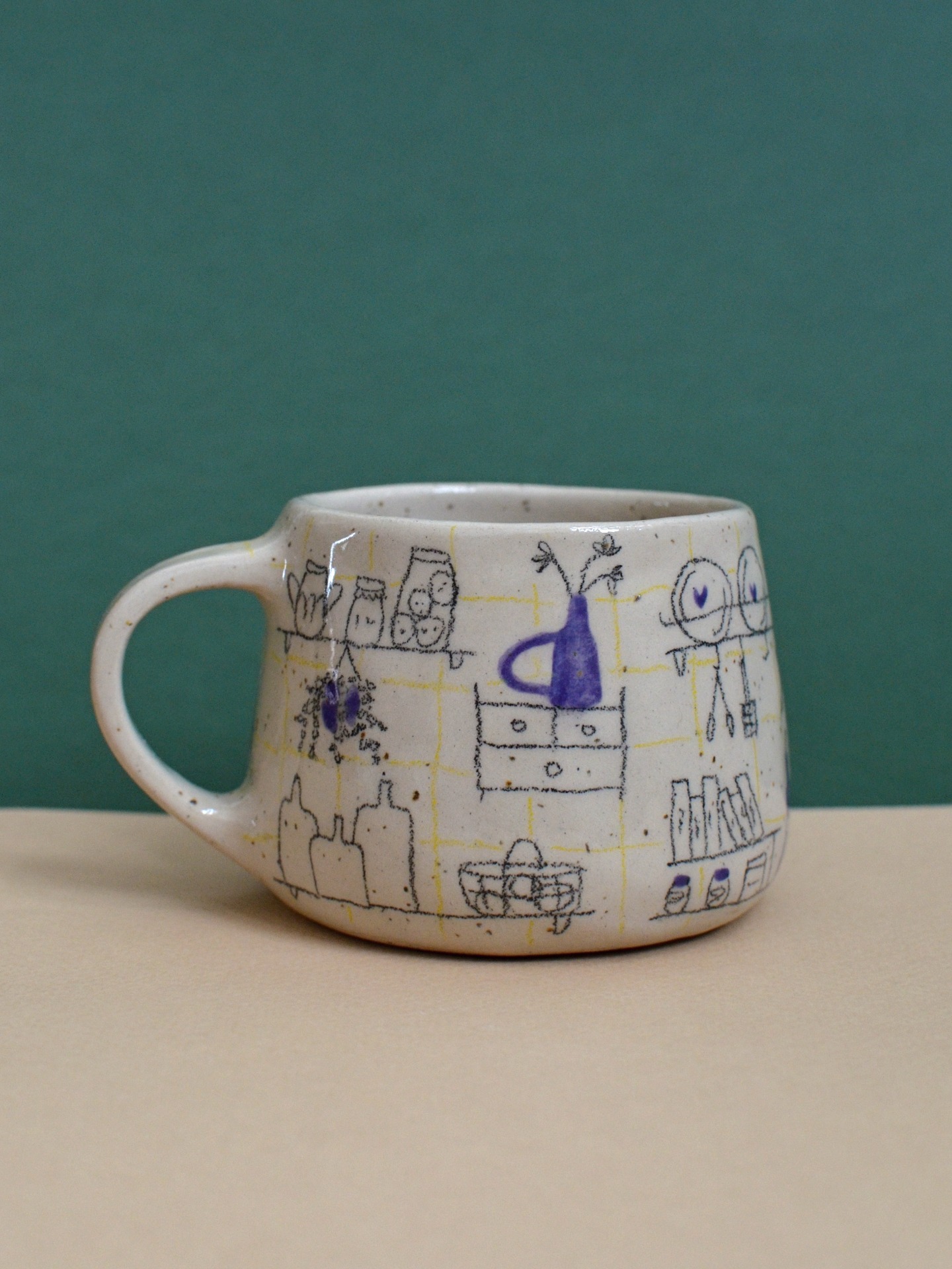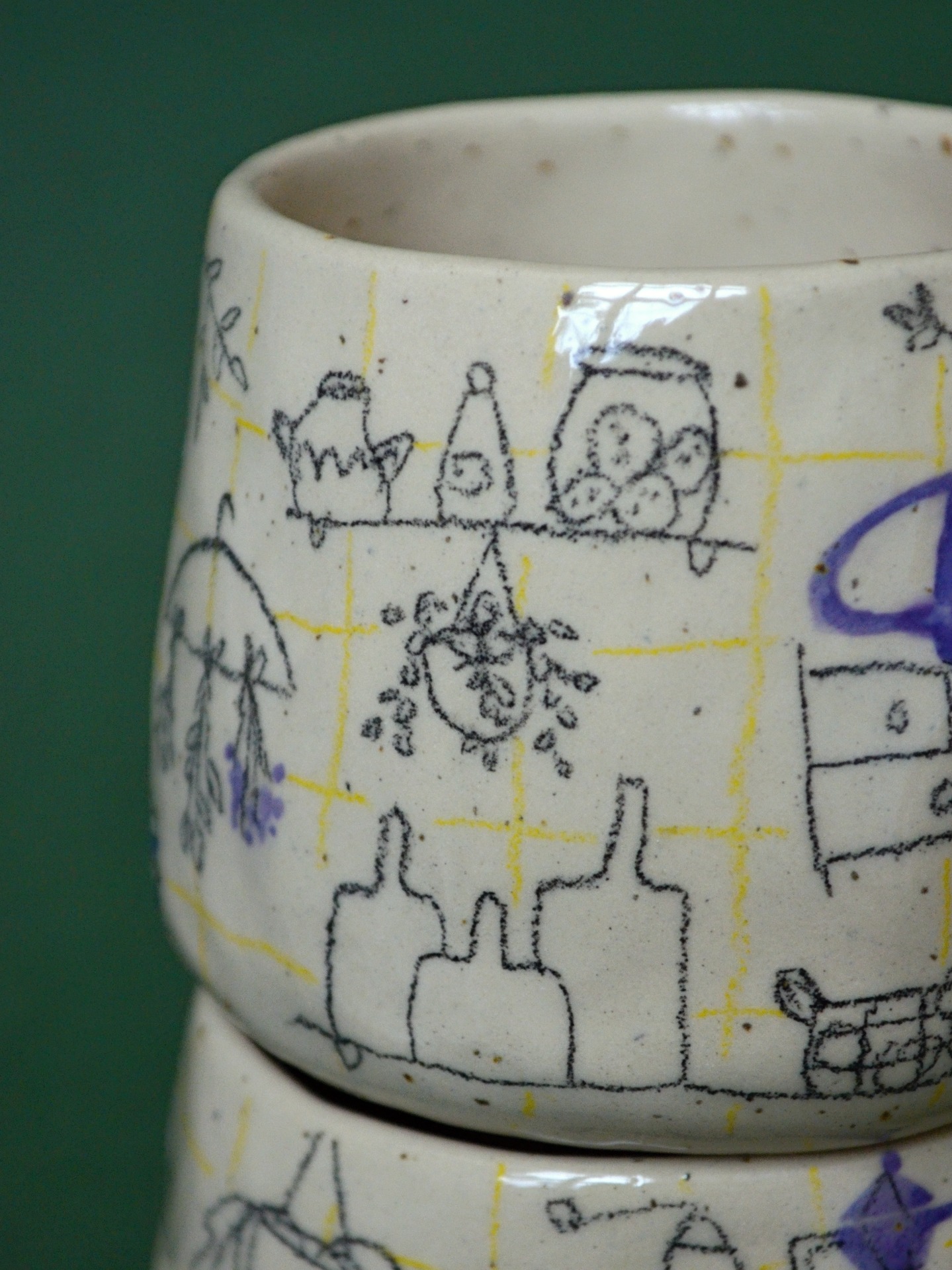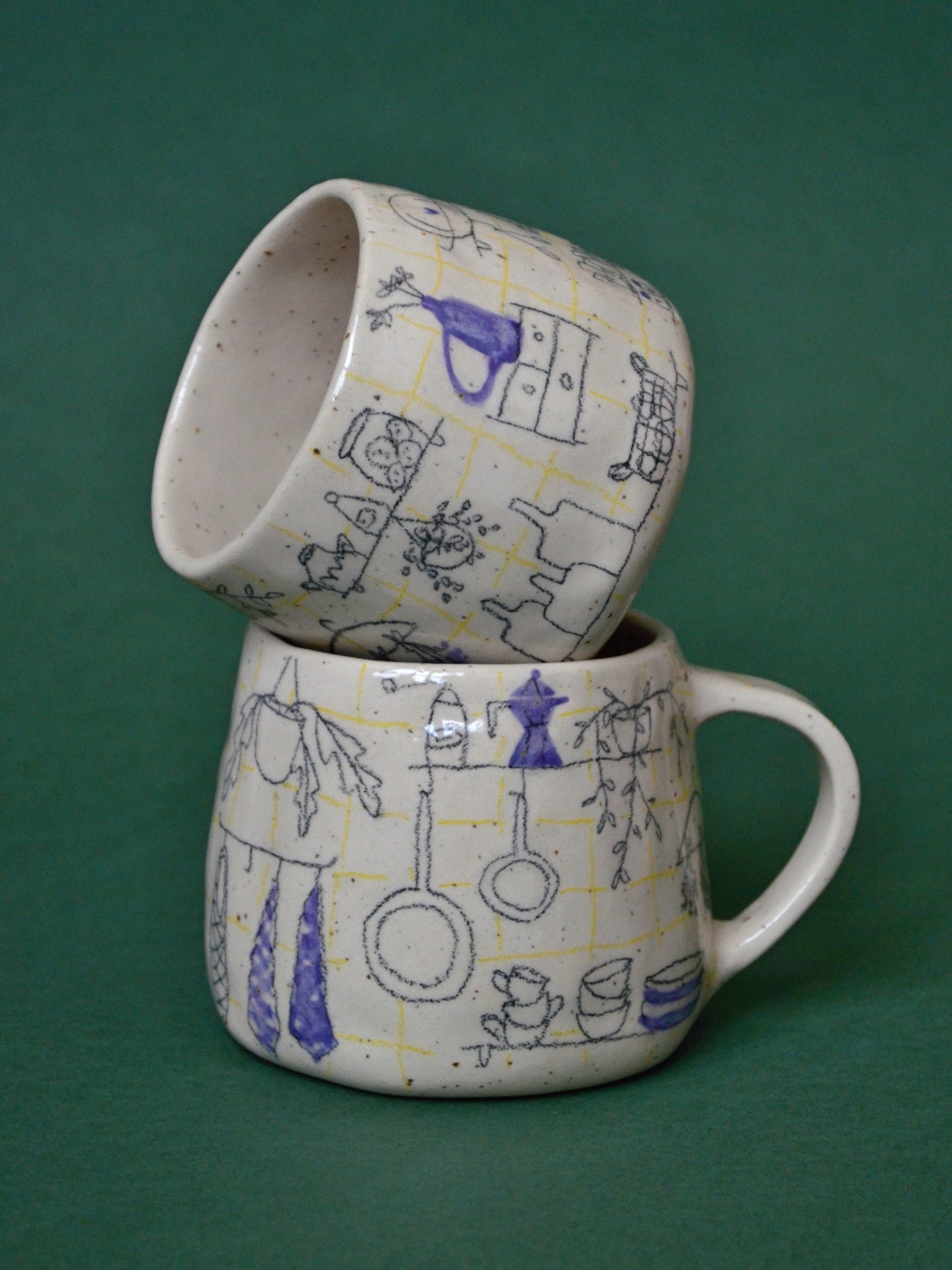 - Made from speckled cream stoneware, decorated with underglaze pencils, and finished with a clear glaze