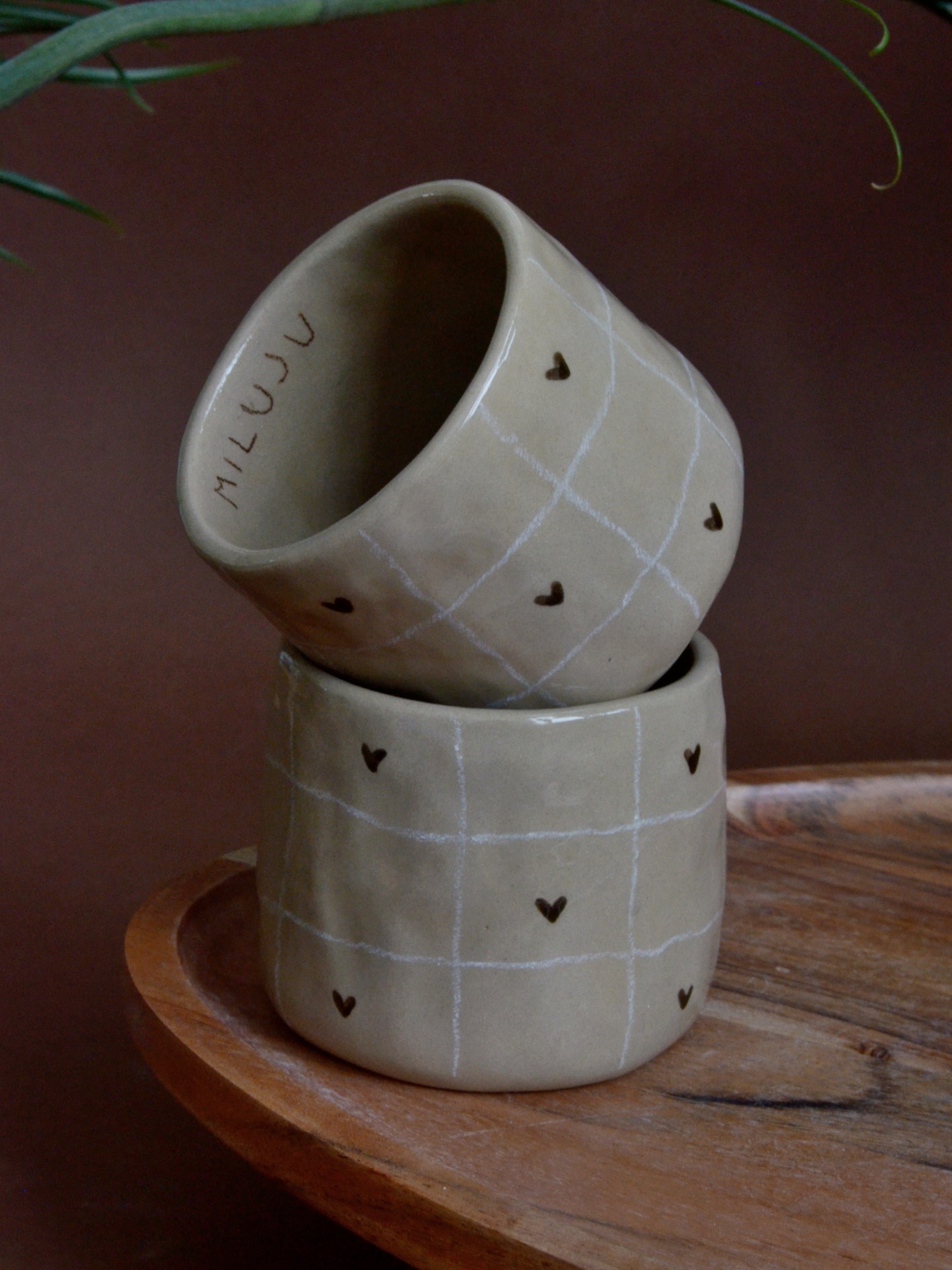 I create ceramics without a potter’s wheel. Out of love for playfulness and uniqueness, I let each piece keep its natural character—it’s not perfectly symmetrical like wheel-thrown ceramics. Because each piece is hand-drawn or painted, no two are exactly the same; slight variations in shape or design may occur.