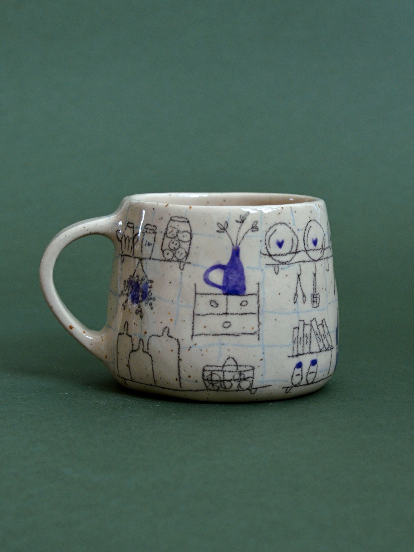 Keramiku tvořím bez hrnčířského kruhu. Z lásky k hravosti a jedinečnosti jí nechávám její typický charakter, není dokonale symetrická jako ta točená a protože každý kousek kreslím nebo maluju ručně, není jeden jako druhý a může se mírně lišit tvarem i kresbou.