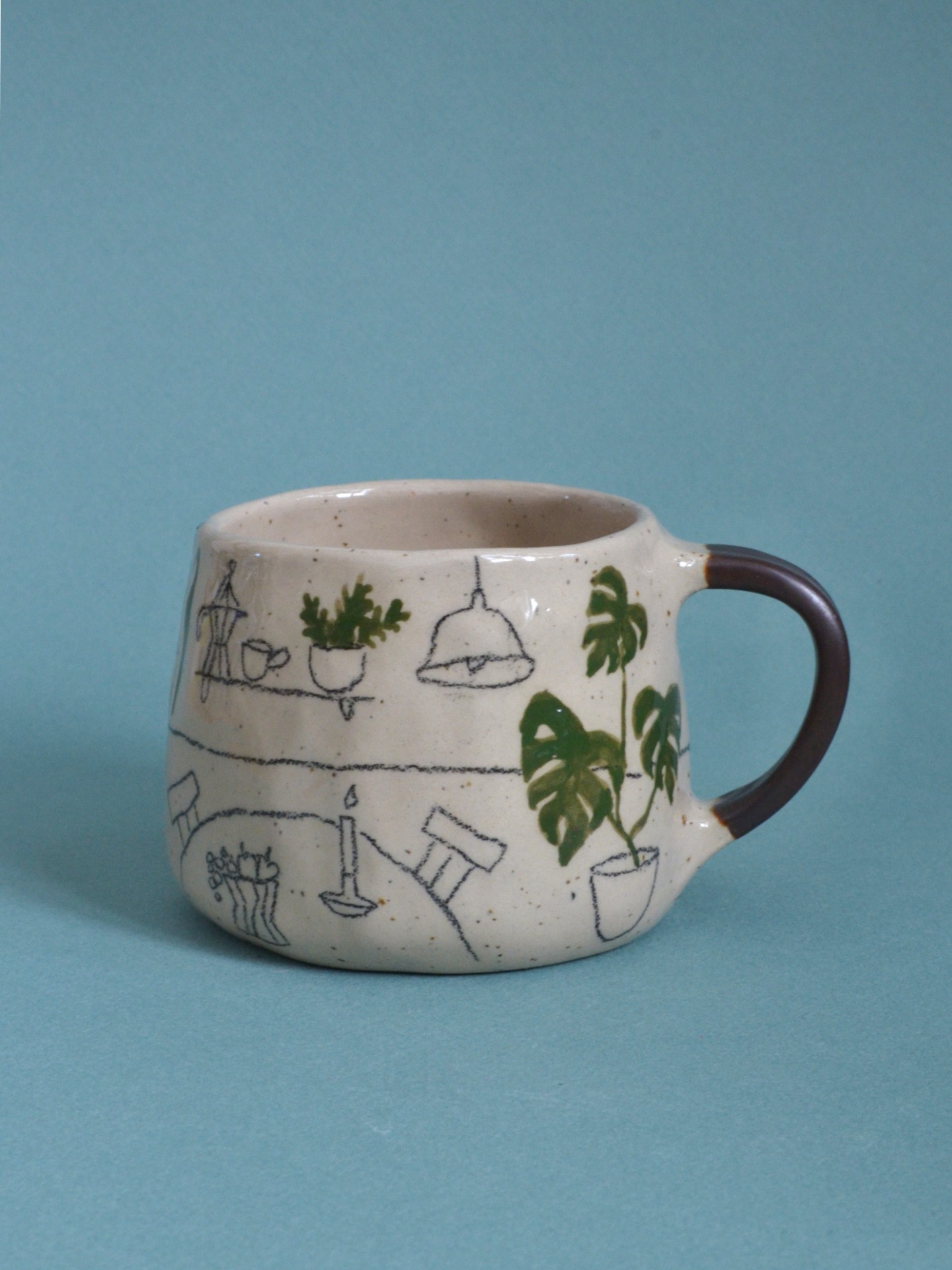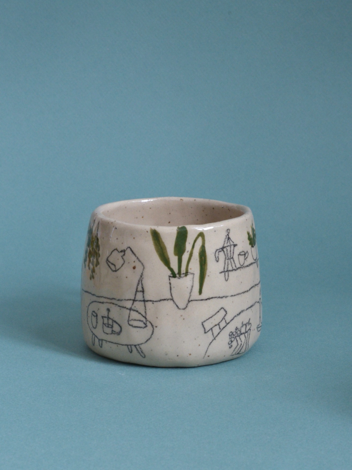Keramiku tvořím bez hrnčířského kruhu. Z lásky k hravosti a jedinečnosti jí nechávám její typický charakter, není dokonale symetrická jako ta točená a protože každý kousek kreslím nebo maluju ručně, není jeden jako druhý a může se mírně lišit tvarem i kresbou.