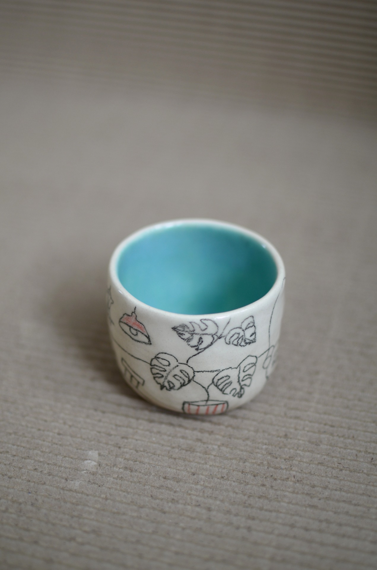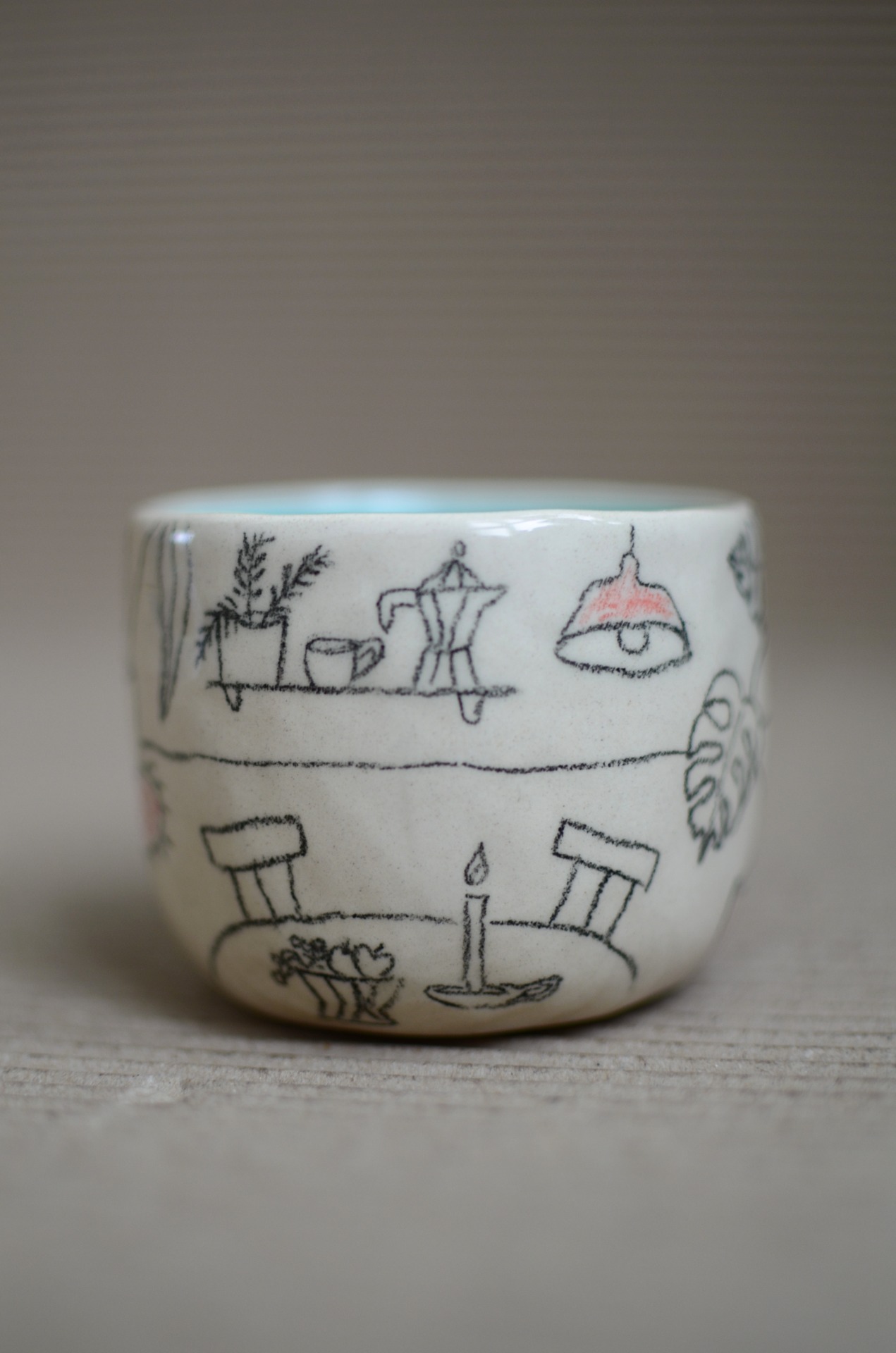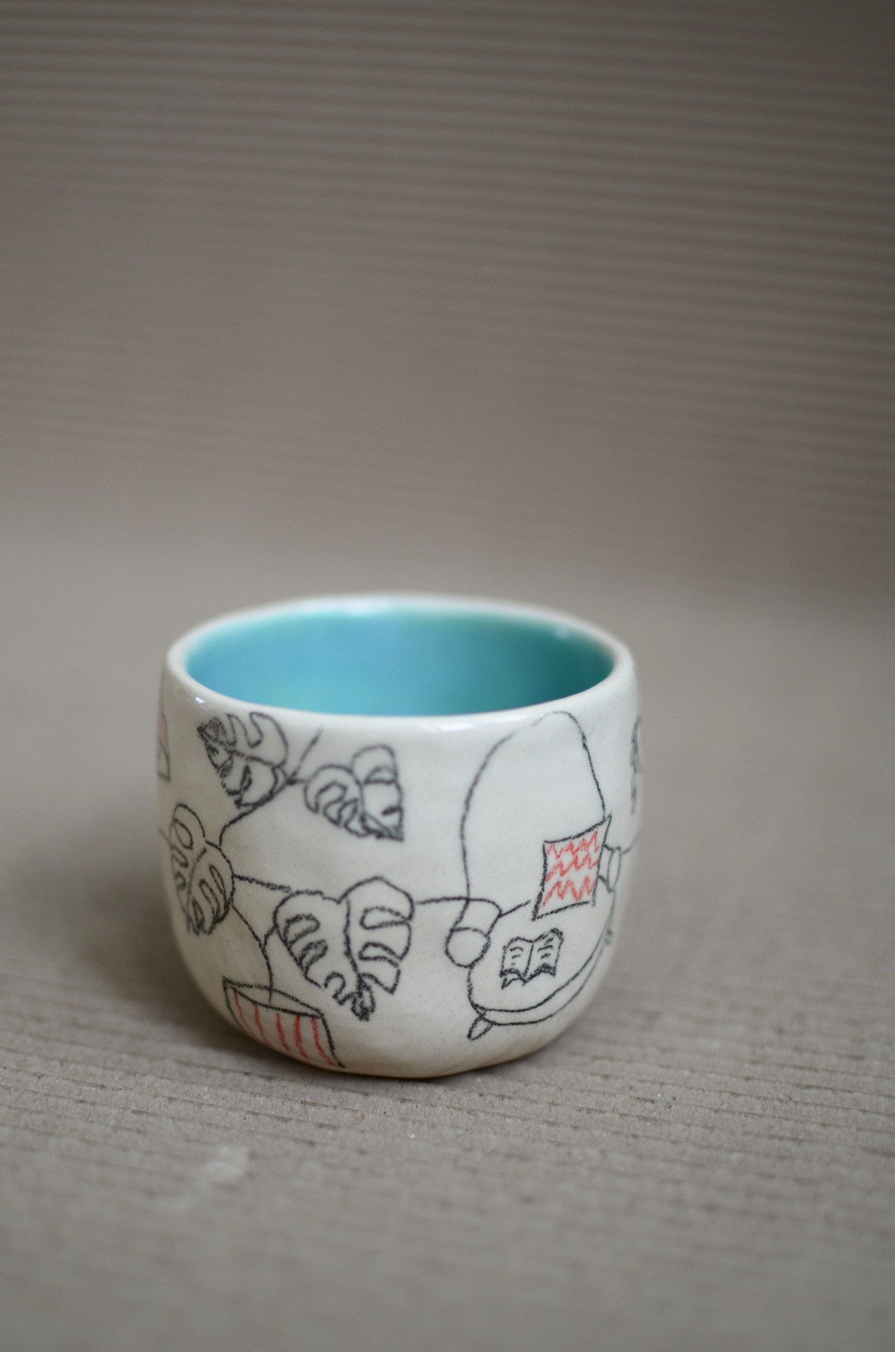 Keramiku tvořím bez hrnčířského kruhu. Z lásky k hravosti a jedinečnosti jí nechávám její typický charakter, není dokonale symetrická jako ta točená a protože každý kousek kreslím nebo maluju ručně, není jeden jako druhý a může se mírně lišit tvarem i kresbou.