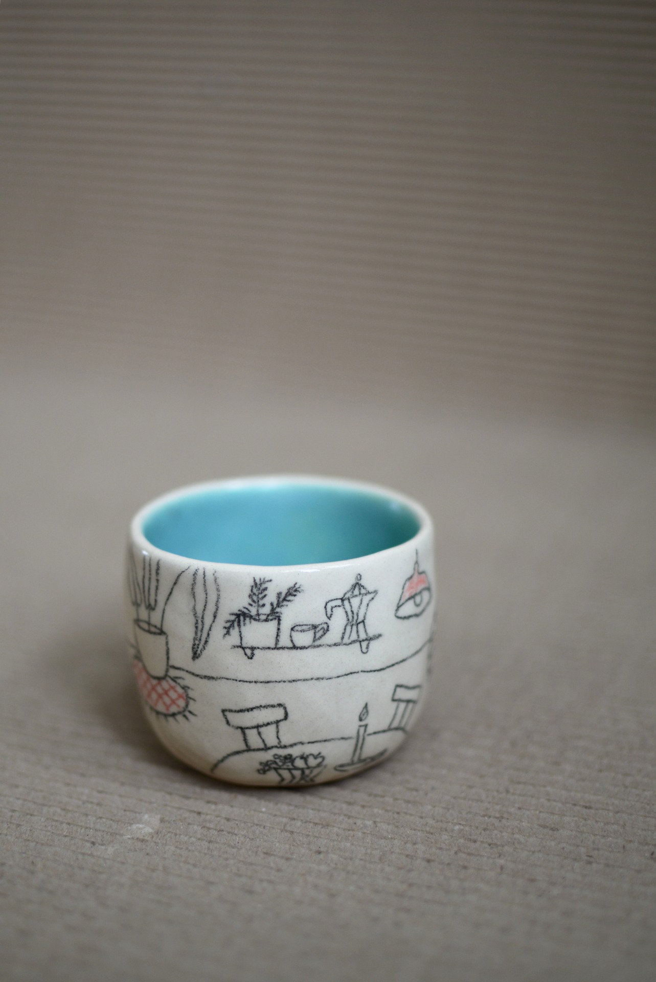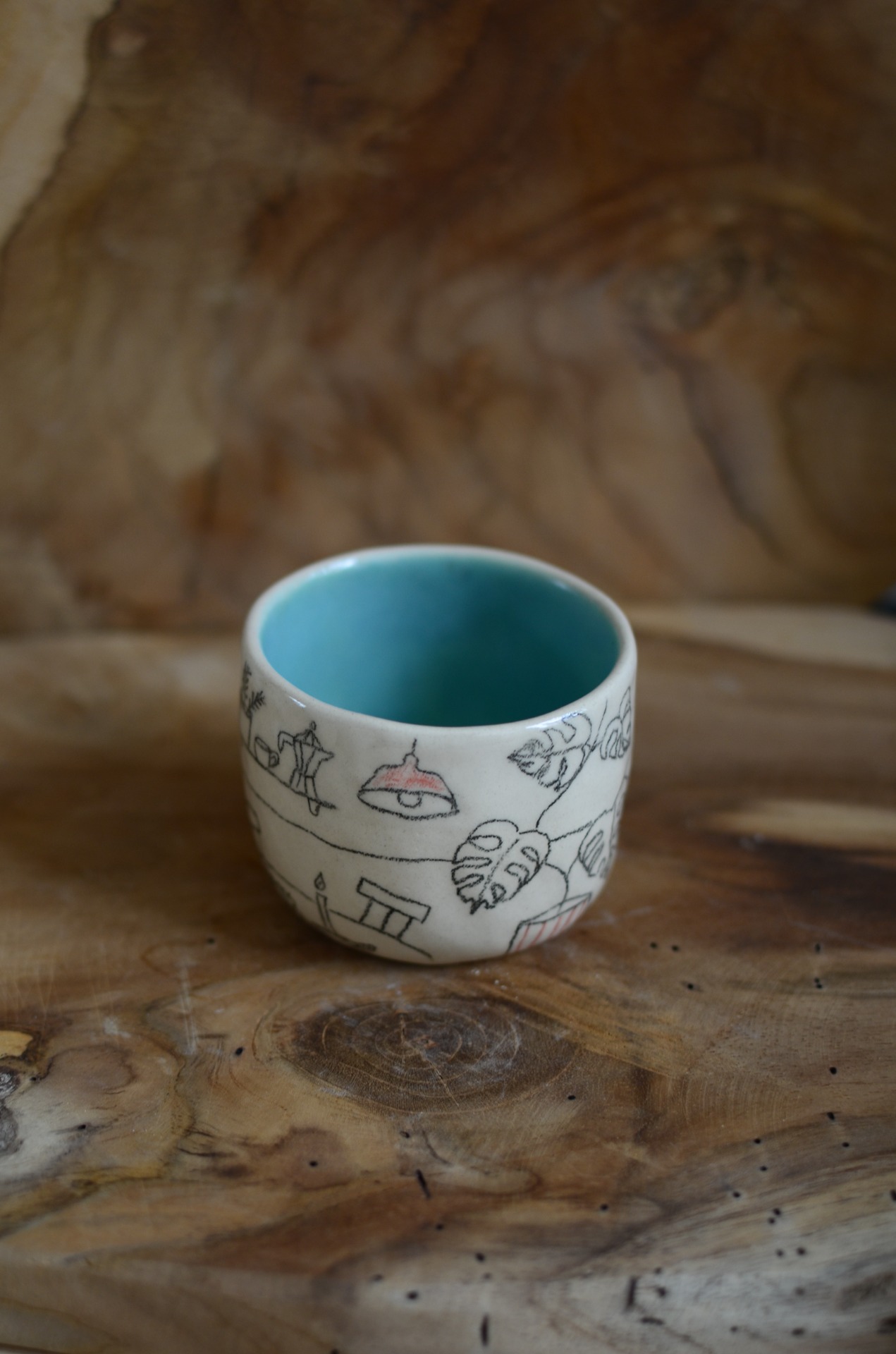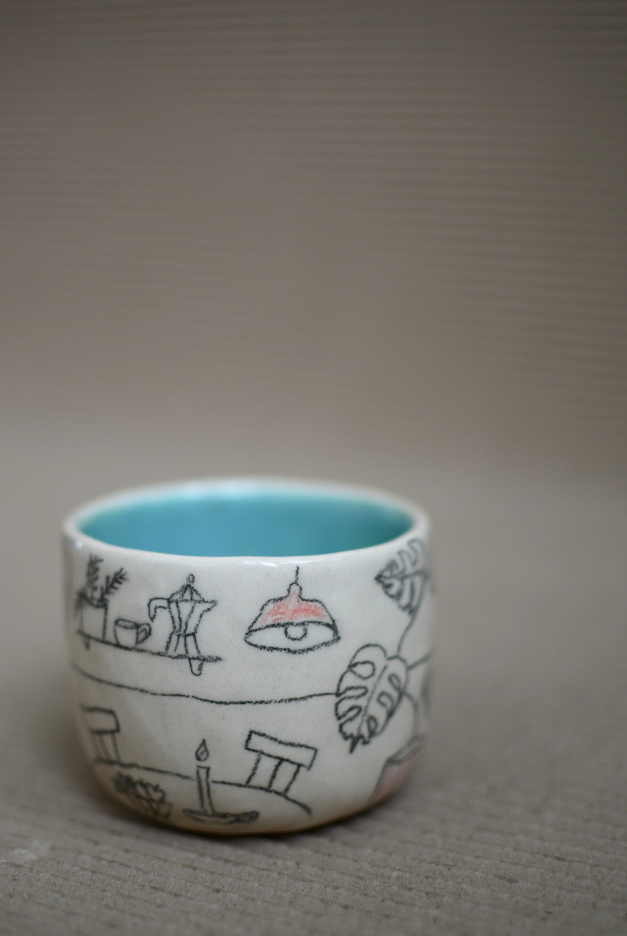 Keramiku tvořím bez hrnčířského kruhu. Z lásky k hravosti a jedinečnosti jí nechávám její typický charakter, není dokonale symetrická jako ta točená a protože každý kousek kreslím nebo maluju ručně, není jeden jako druhý a může se mírně lišit tvarem i kresbou.